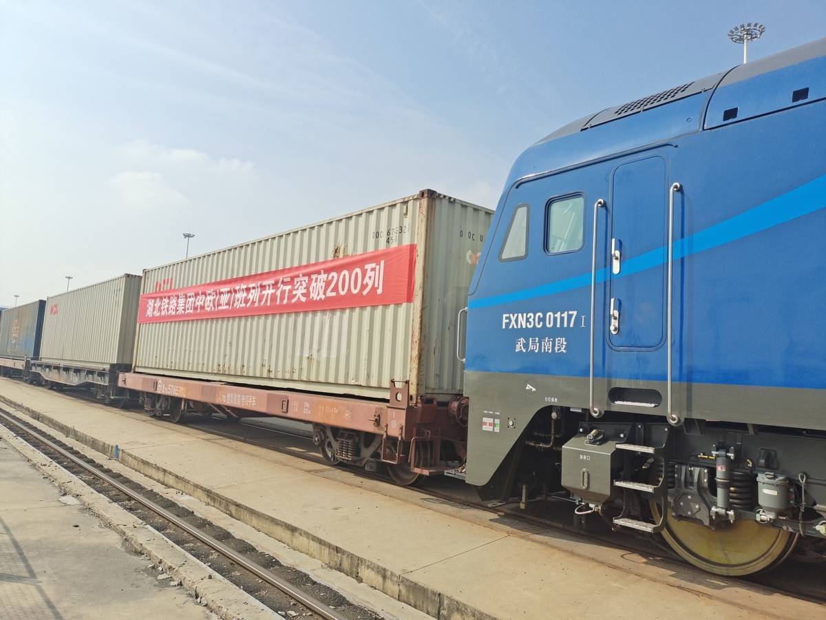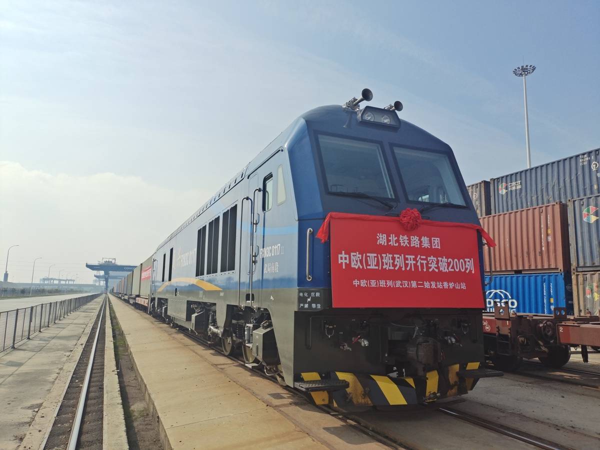 湖北日报讯(记者李先宏、严芳婷、通讯员 芦忠章)2月8日上午,一列满载55个集装箱汽车散件的中亚班列从长江之畔的香炉山站驶出,经霍尔果斯口岸奔赴哈萨克斯坦。这标志着湖北铁路集团国际联运有限公司累计开行中欧(亚)班列突破200列,成为湖北深度融入共建“一带一路”高质量发展的又一重要里程碑。
